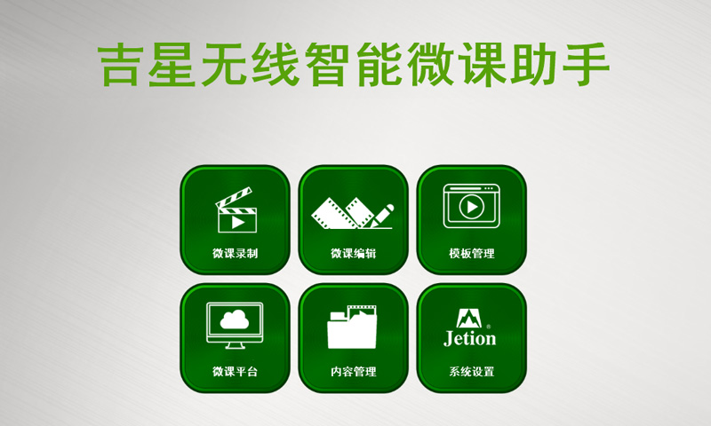 由吉星自主研發、真正實現微課錄制和編輯的工具軟件。它可與吉星無線微錄儀視頻展臺直接連接,為用戶提供“微課錄制、微課編輯、自定義模板管理、微課上傳”等多種微課制作、編輯的常用功能。